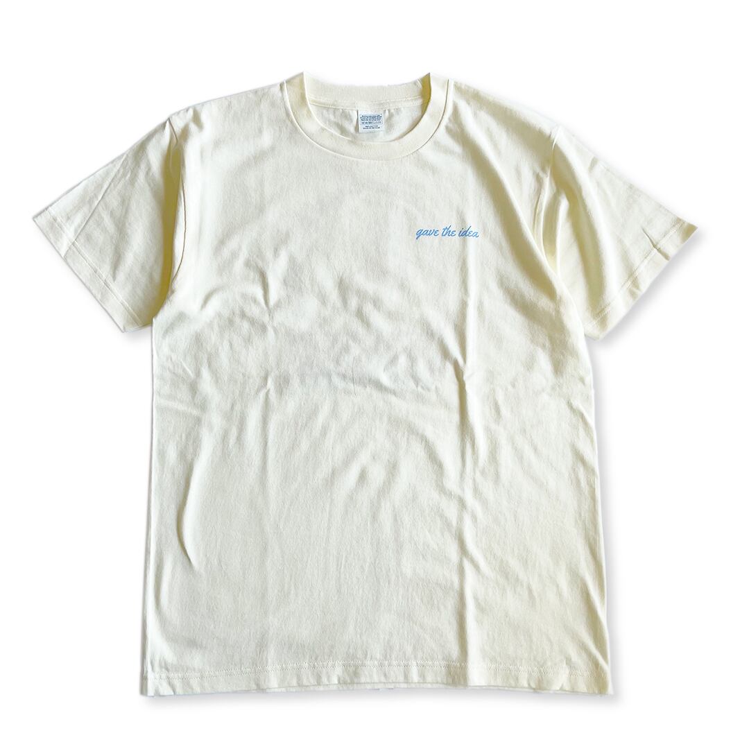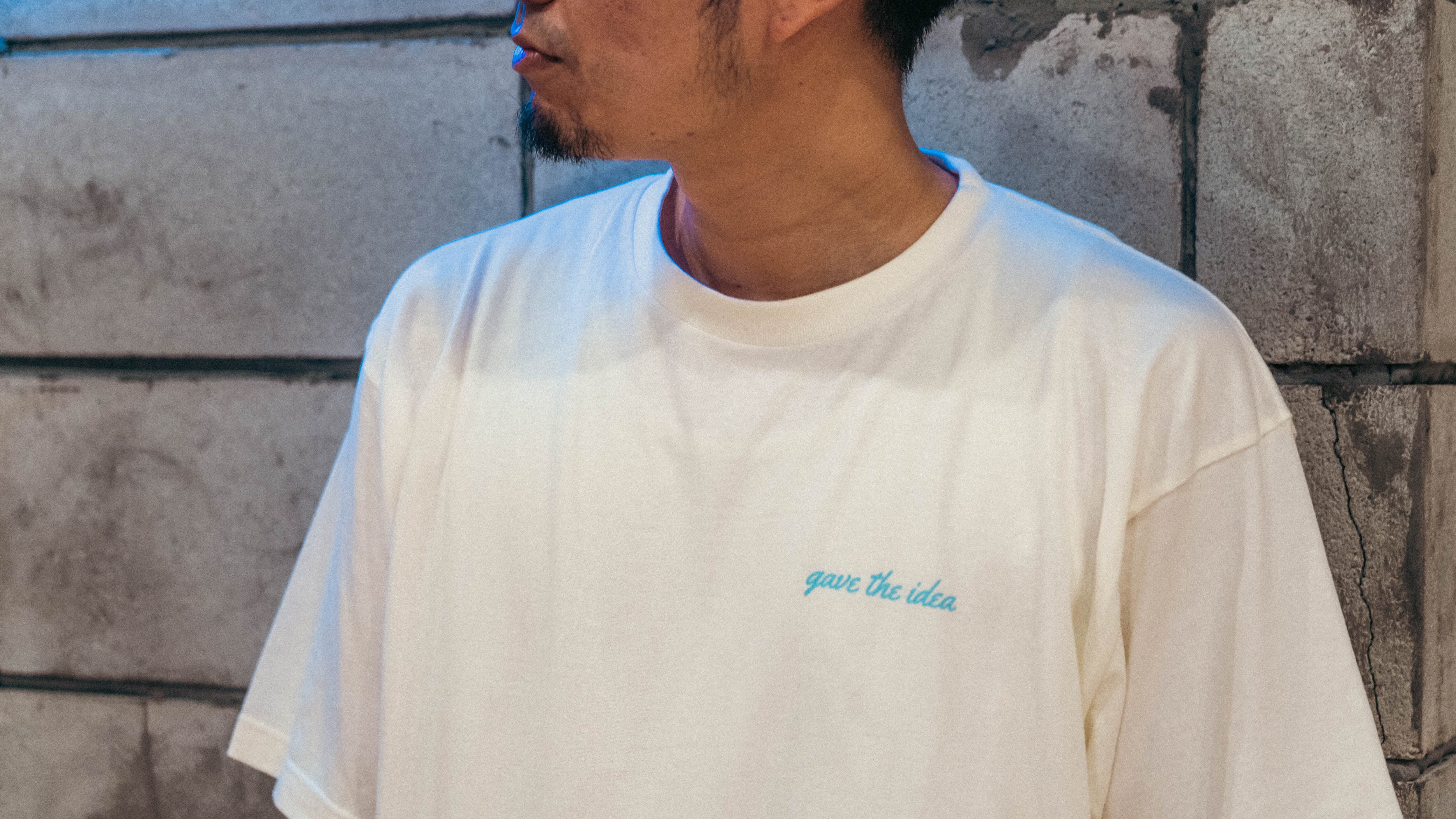 「Gave the idea T-シャツ」は、「CHIIKA MAN gave the idea」というメッセージデザインが特徴の一枚です。このデザインは、音楽がリスナーに生きる活力や影響を与えるという意味を込めています。さらに、関心や知恵、活力を表す「林檎」のイラストもプリントされています。